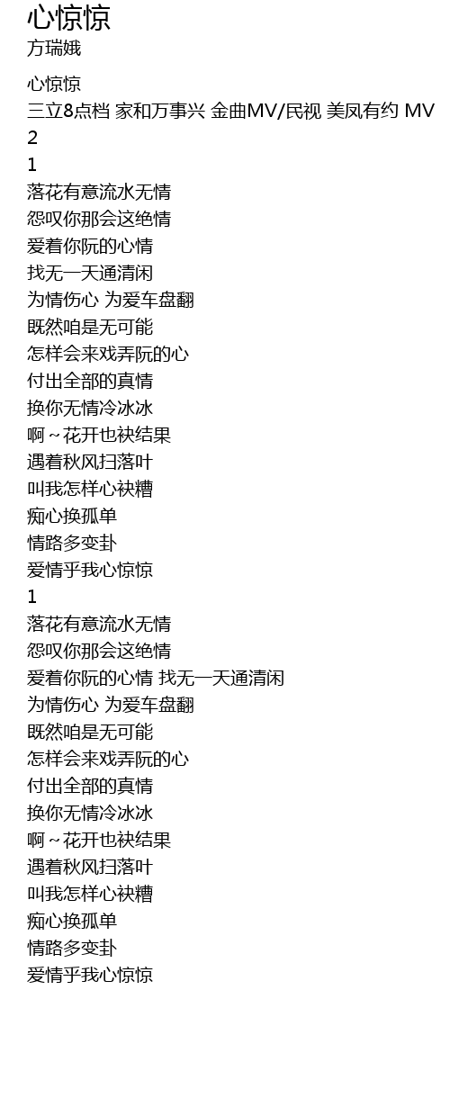 | [00:00.00] | 心惊惊 |