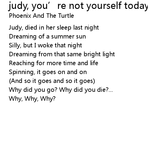 | Song | judy, you’re not yourself today |