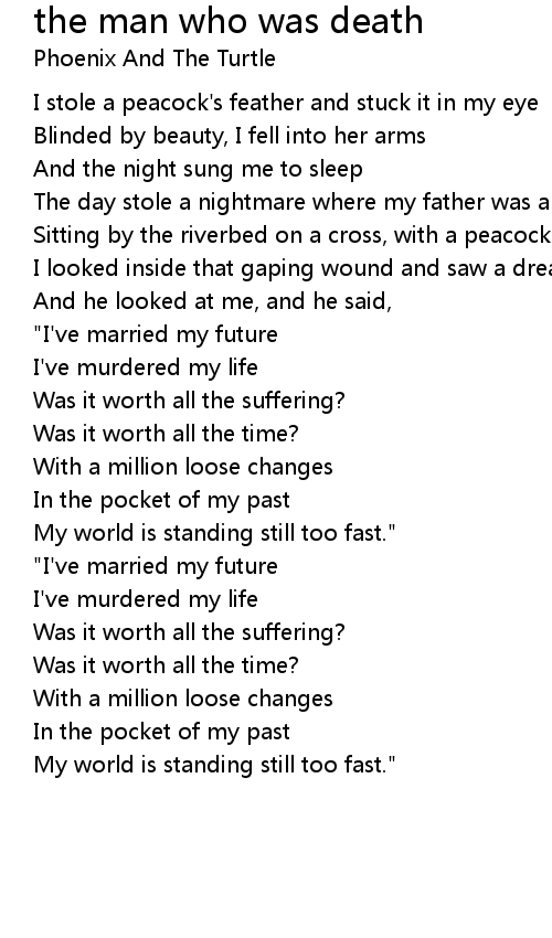 Sitting by the riverbed on a cross, with a peacock feather stuck in his side. |