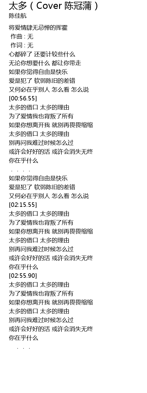 | [03:16.20] | tai duo de jie kou tai duo de li you |