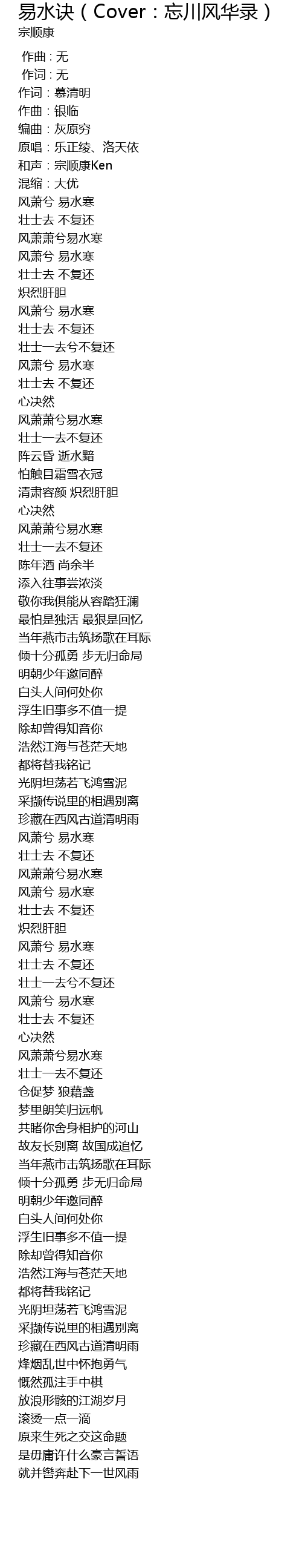 | [02:11.51] | fēng xiāo xī yì shuǐ hán |