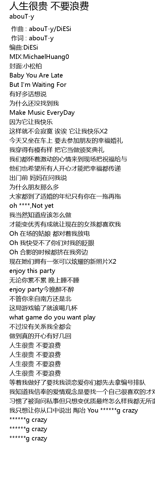| [01:42.119] | enjoy party今晚醉不醉 |