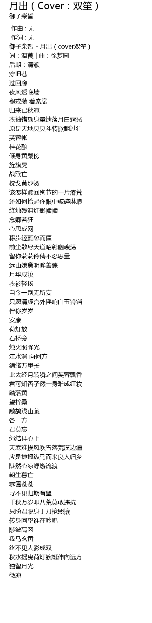 | [00:00.00] | 御子柴皙 - 月出(cover双笙) |