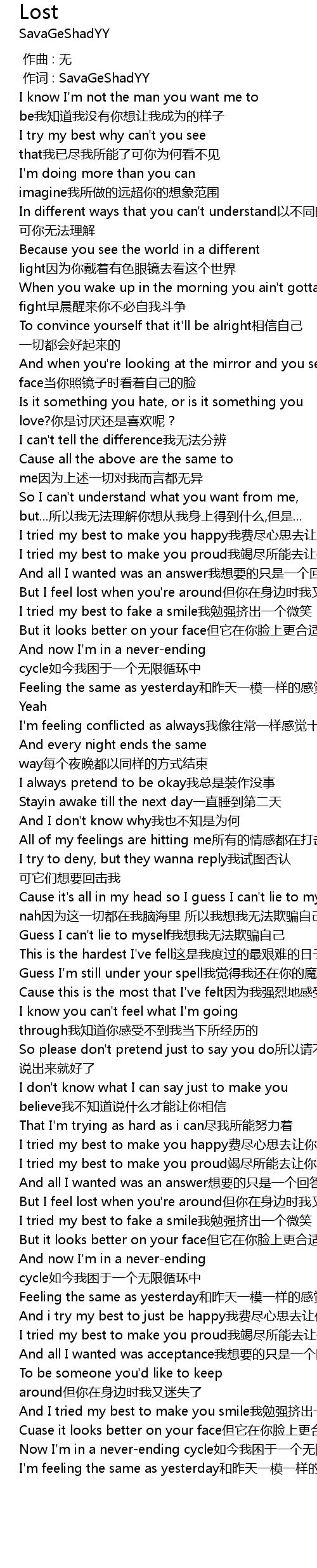 | [00:01.000] | 作词 : SavaGeShadYY |