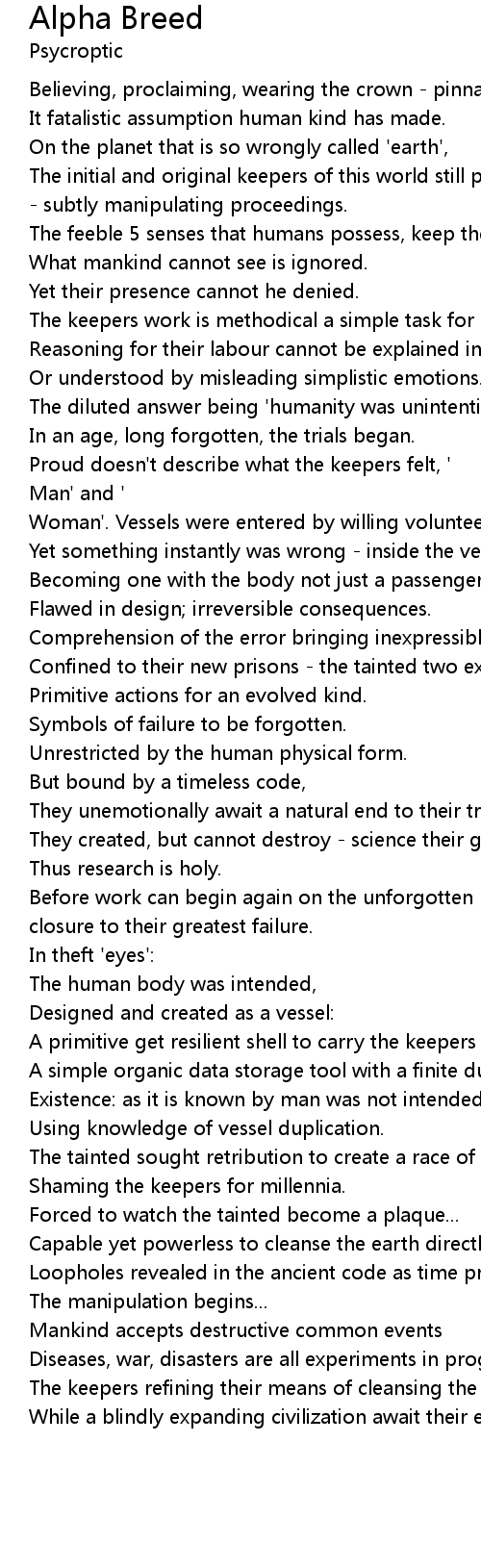 The tainted sought retribution to create a race of a failed breed, |