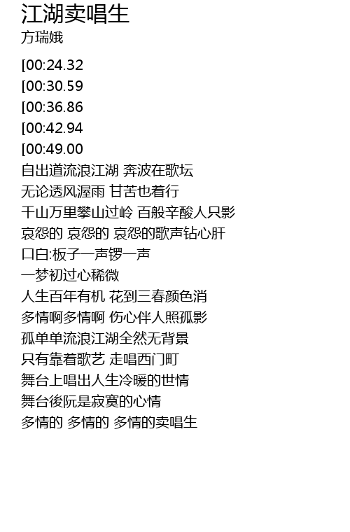 | [03:24.71] | 多情的 多情的 多情的卖唱生 |