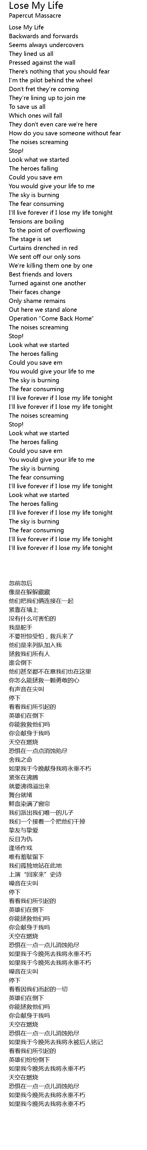 Lose My Life Lyrics