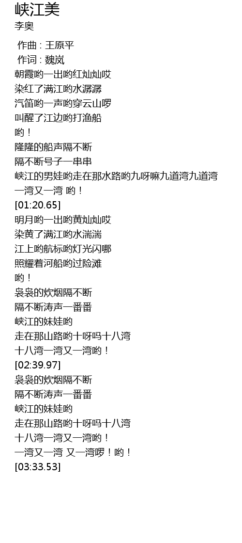 | [01:52.64] | 江上哟航标哟灯光闪哪 |