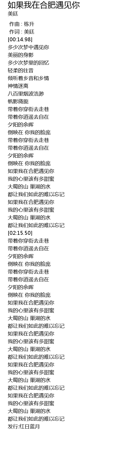 | [01:44.75] | 大蜀的山 巢湖的水 |