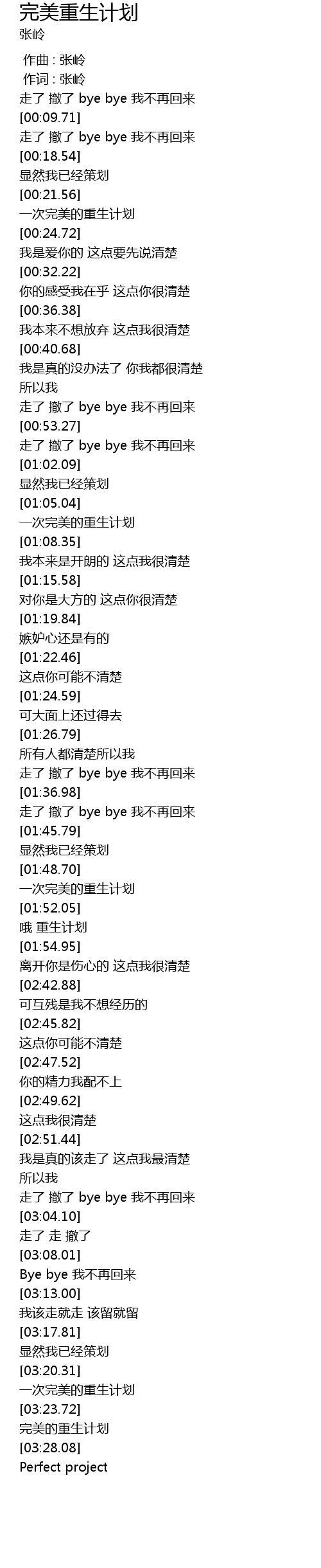 | [03:26.83] | 完美的重生计划 |