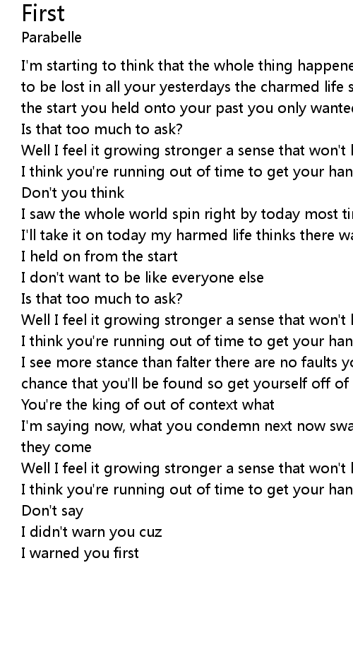 I'm starting to think that the whole thing happened yesterday sometimes its easy to be lost in all your yesterdays the charmed life says you were nothing from the start you held onto your past you only wanted what everyone had
