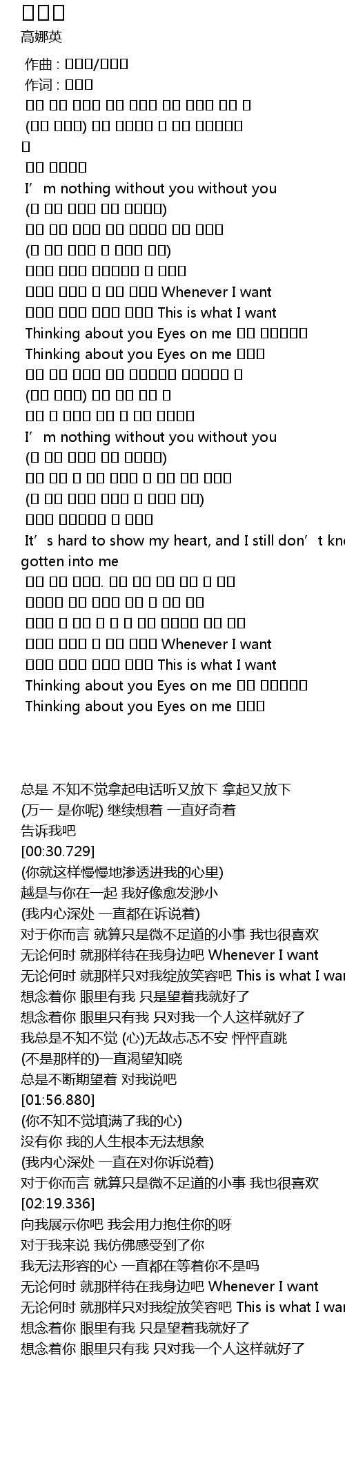 | [01:13.835] | Thinking about you Eyes on me 나만 바라봐줄래 |