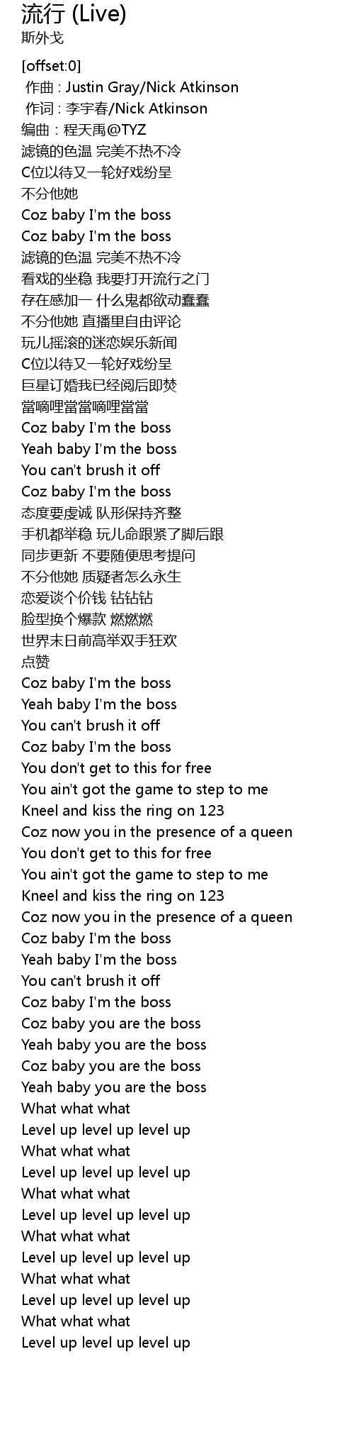 | [00:00.680] | 作词 : 李宇春/Nick Atkinson |