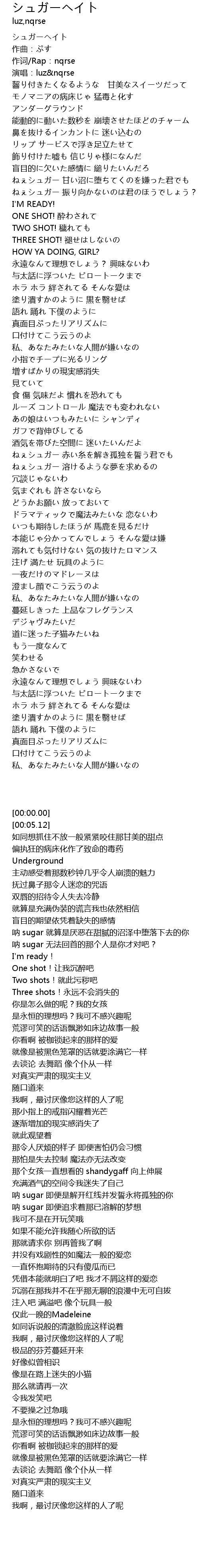 | [00:43.10] | ねぇシュガー 甘い沼に堕ちてくのを嫌った君でも |