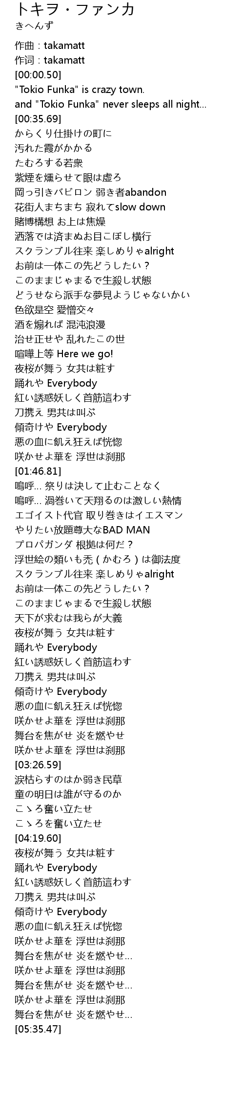 | [00:20.11] | "Tokio Funka" is crazy town. |