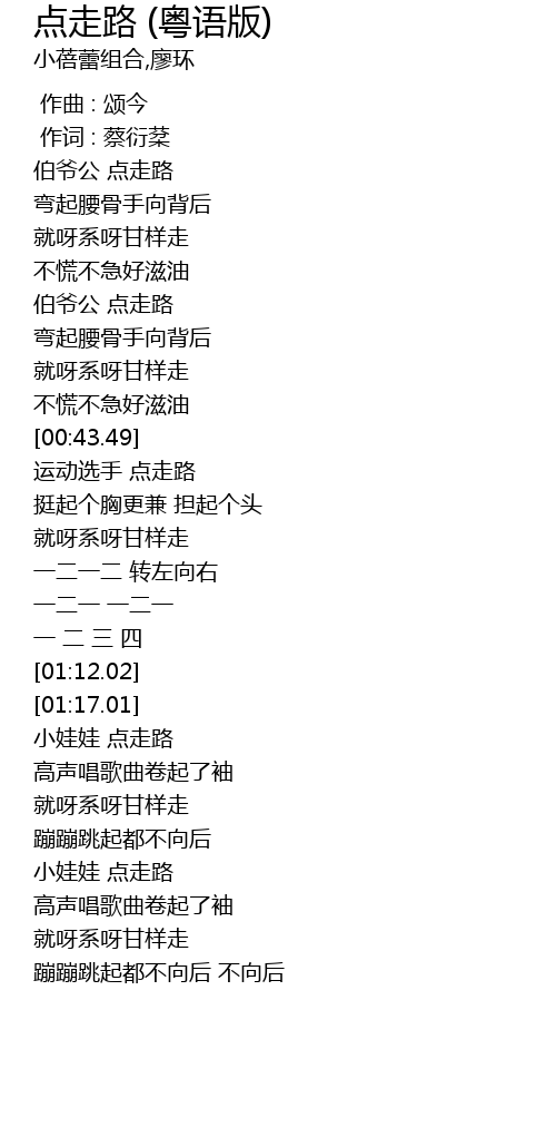 | [00:43.94] | yùn dòng xuǎn shǒu diǎn zǒu lù |