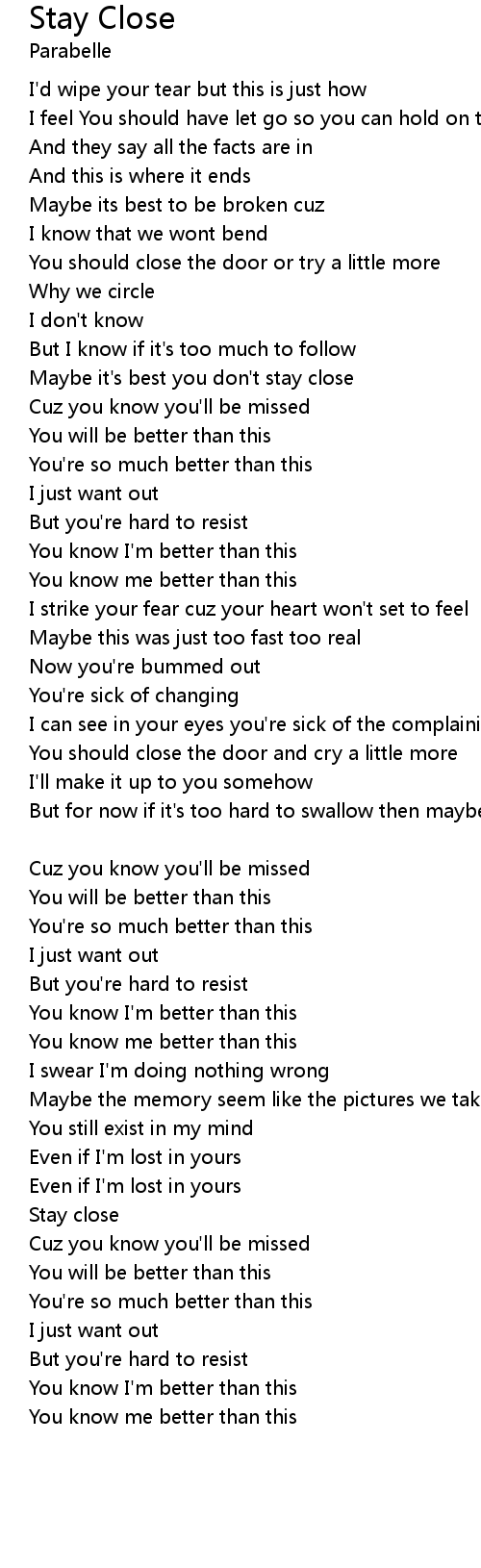 But for now if it's too hard to swallow then maybe its best you don't stay close |