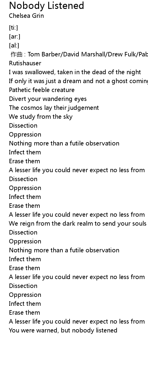 | [02:50.63] | You were warned, but nobody listened |