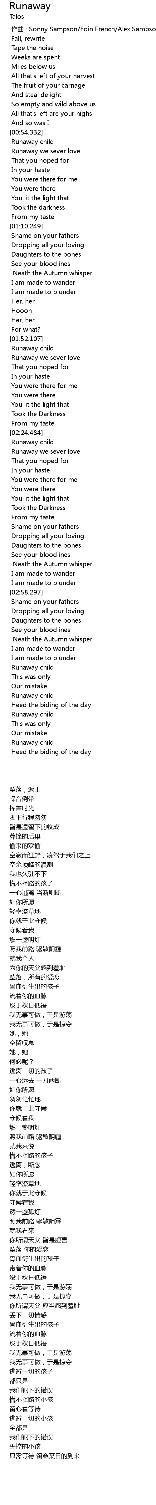 | [02:27.597] | Runaway we sever love |