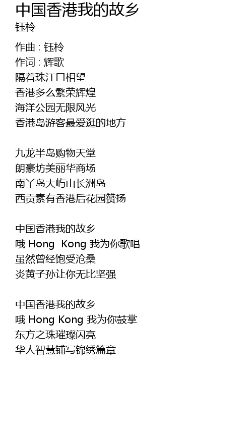 | 中国香港我的故乡 | |