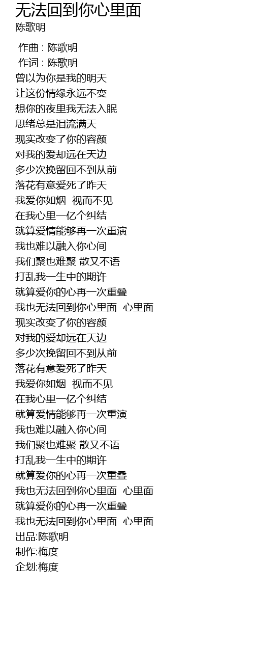 | [02:56.02] | 我也无法回到你心里面 心里面 |