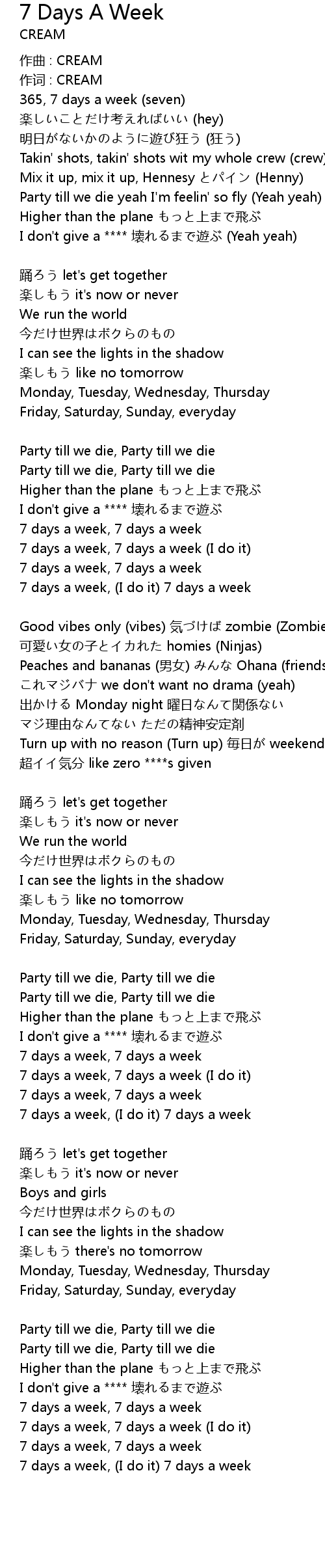 | 7 days a week, 7 days a week (I do it) | |