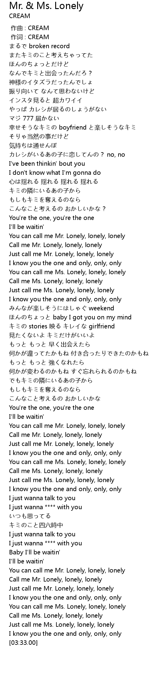 | [03:23.86] | Call me Ms. Lonely, lonely, lonely |