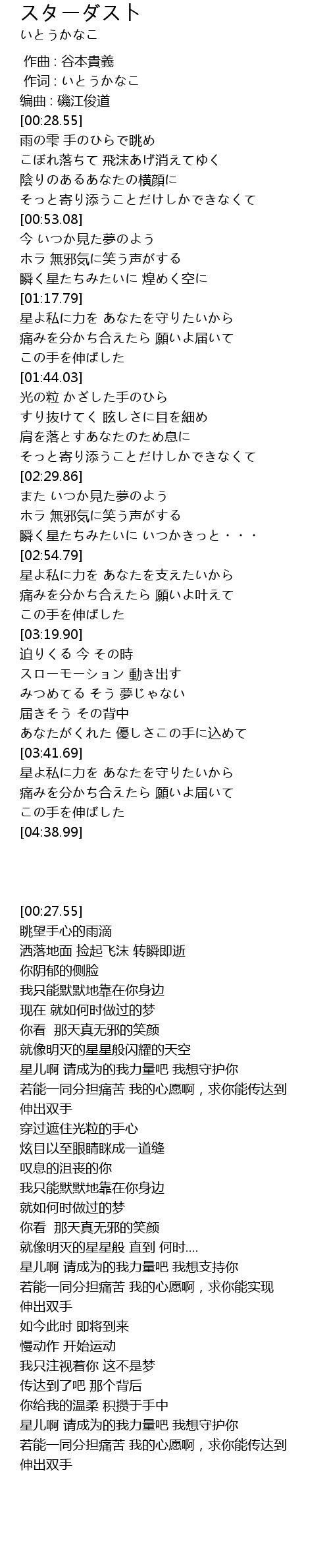 | [04:12.00] | 星よ私に力を あなたを守りたいから |