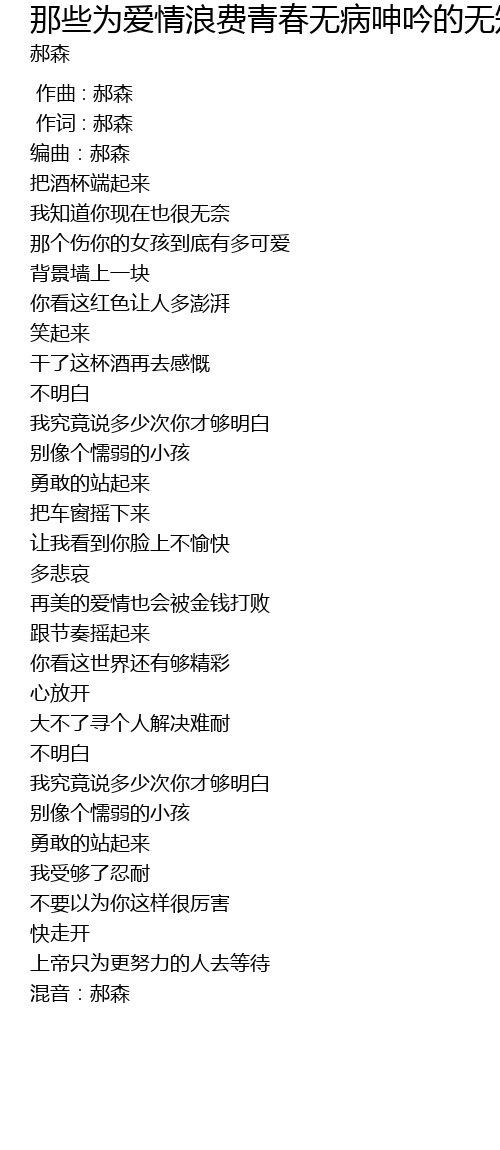 | Song | 那些为爱情浪费青春无病呻吟的无知少年 |