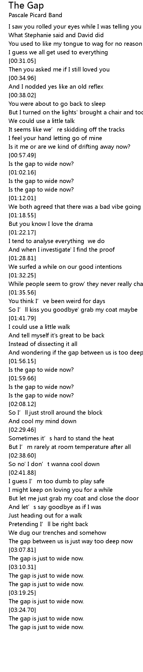 | [01:52.33] | And wondering if the gap between us is too deep now |