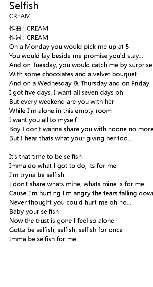 | Baby your selfish | |