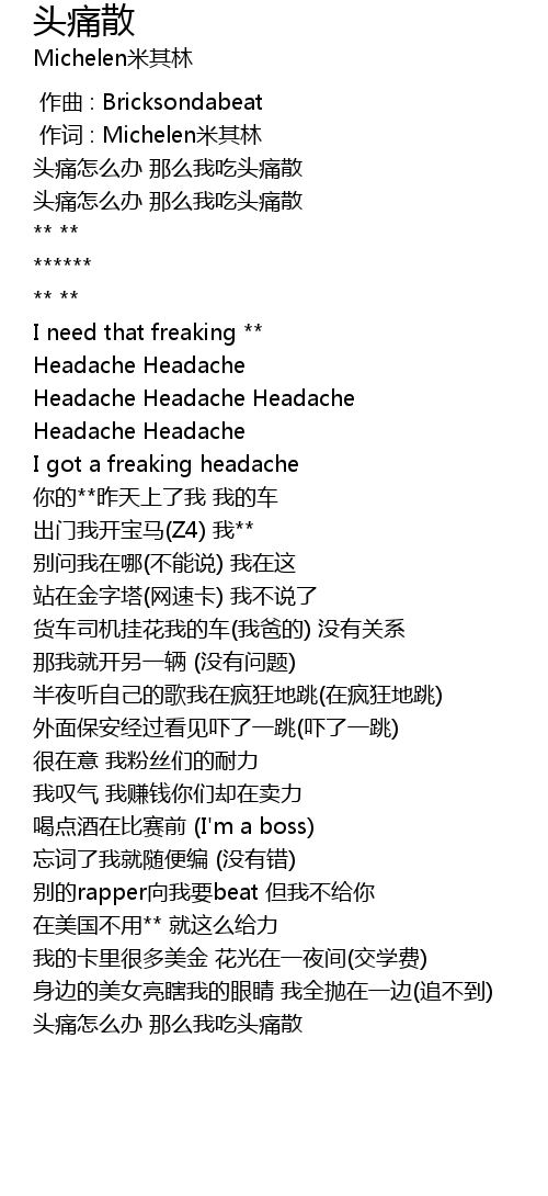 | [01:58.683] | 头痛怎么办 那么我吃头痛散 |