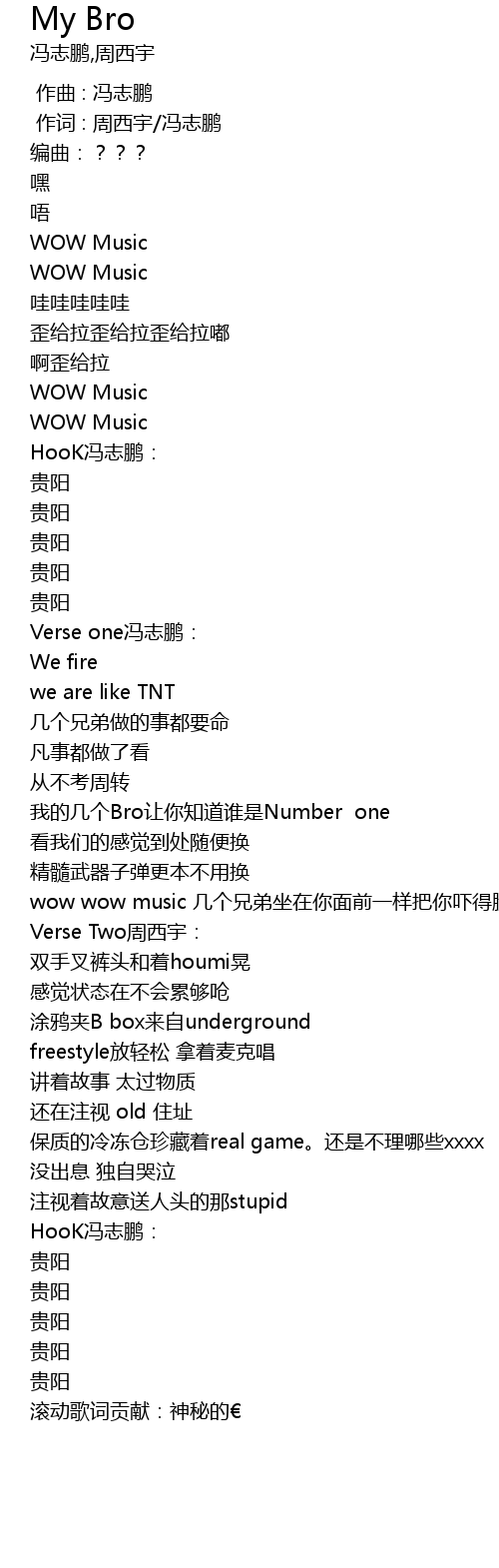 | [00:01.000] | 作词 : 周西宇/冯志鹏 |