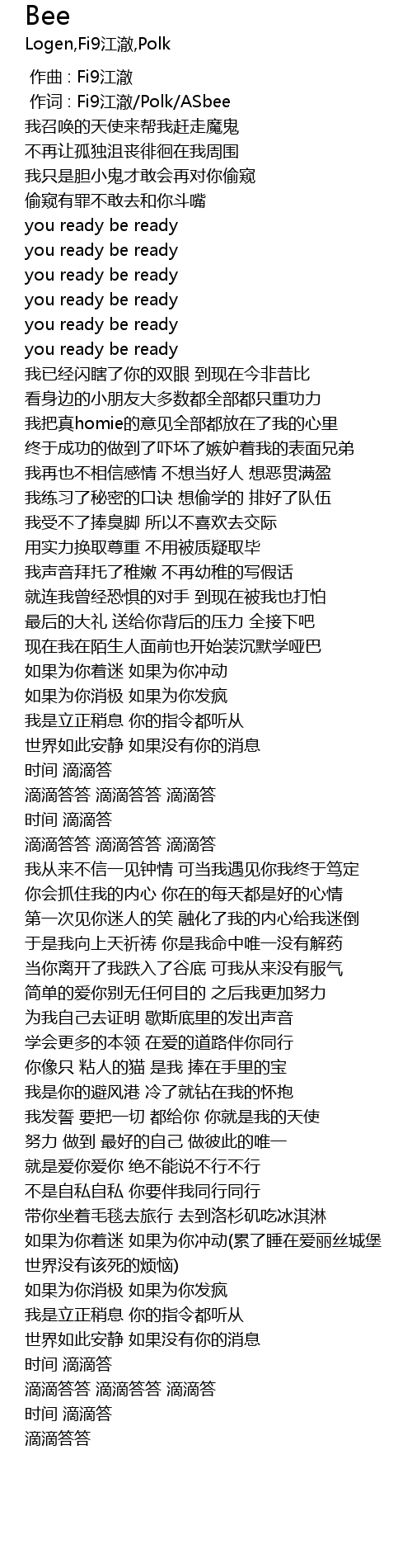 | [00:01.000] | 作词 : Fi9江澈/Polk/ASbee |