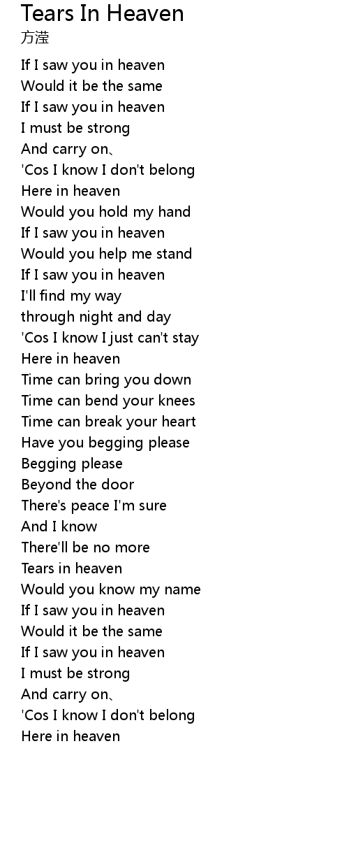 | [00:04.889] | If I saw you in heaven |