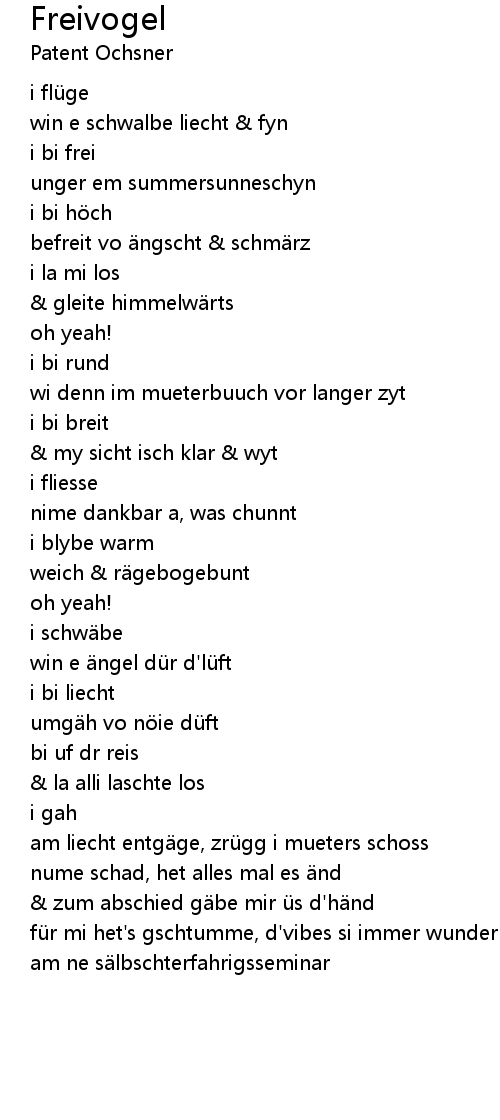 | für mi het's gschtumme, d'vibes si immer wunderbar | |