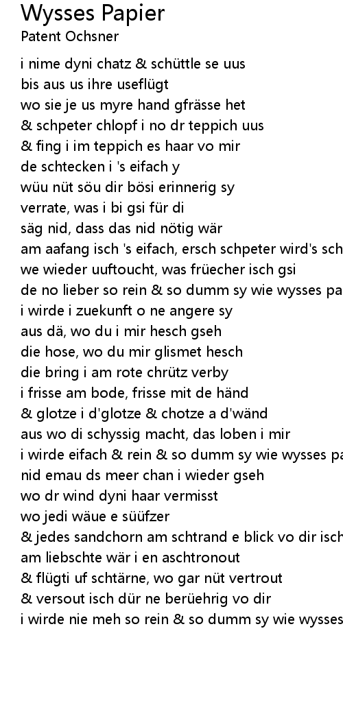 | i wirde nie meh so rein so dumm sy wie wysses papier |