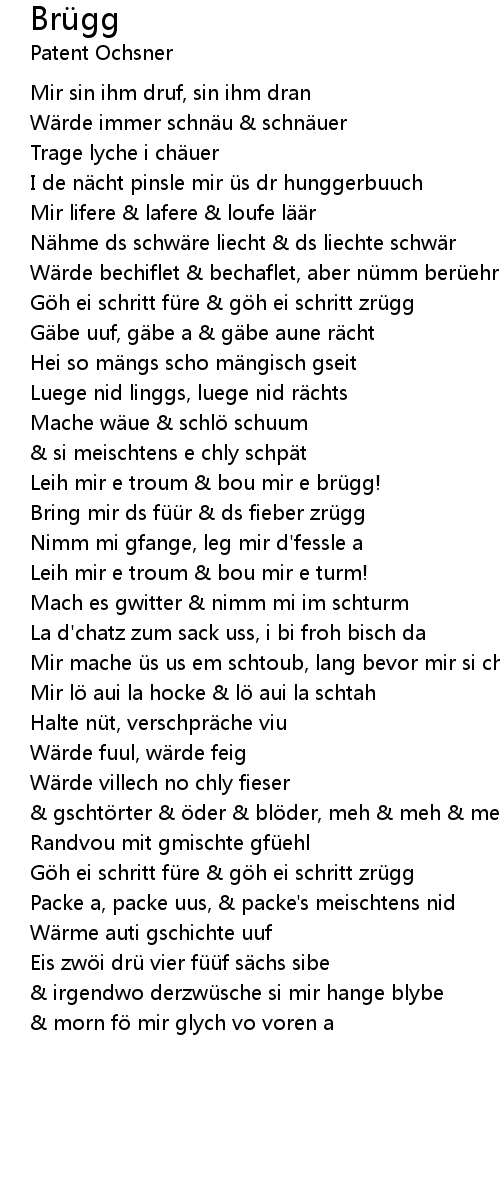| Mir mache üs us em schtoub, lang bevor mir si cho | |