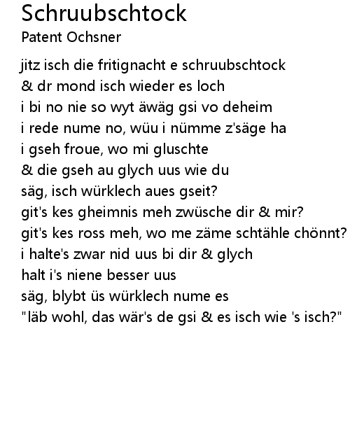 | Song | Schruubschtock |