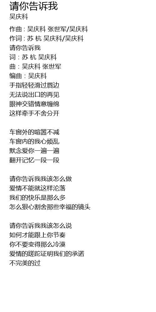 | 作曲 : 吴庆科 张世军/吴庆科 | |