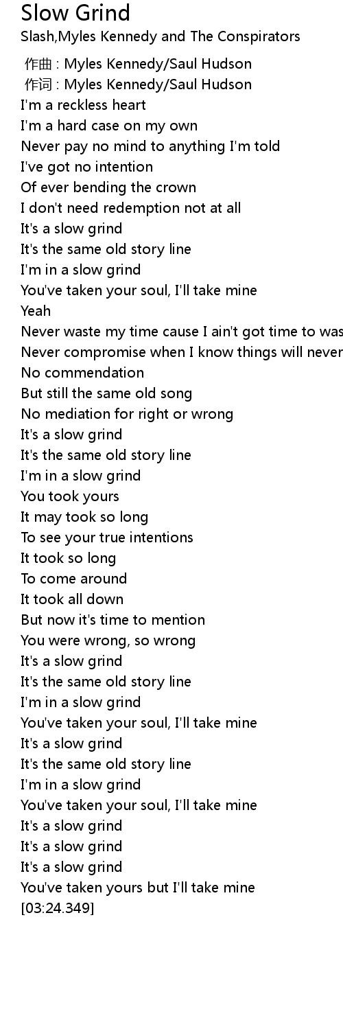 | [03:03.233] | I' m in a slow grind |