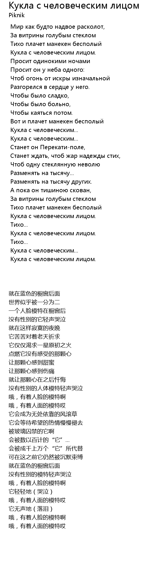 Вот и плачет манекен бесполый |