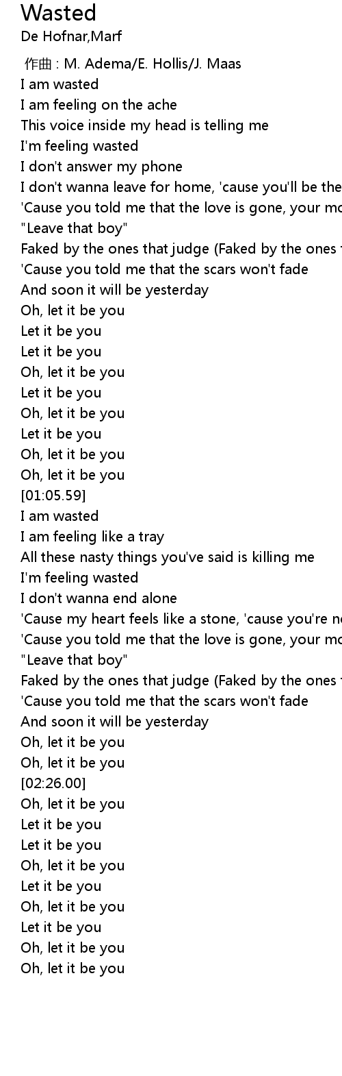 | [00:00.27] | I am wasted |