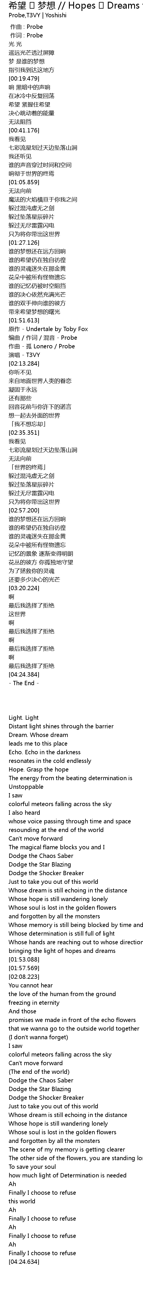 | [01:57.569] | 编曲 / 作词 / 混音 - Probe |