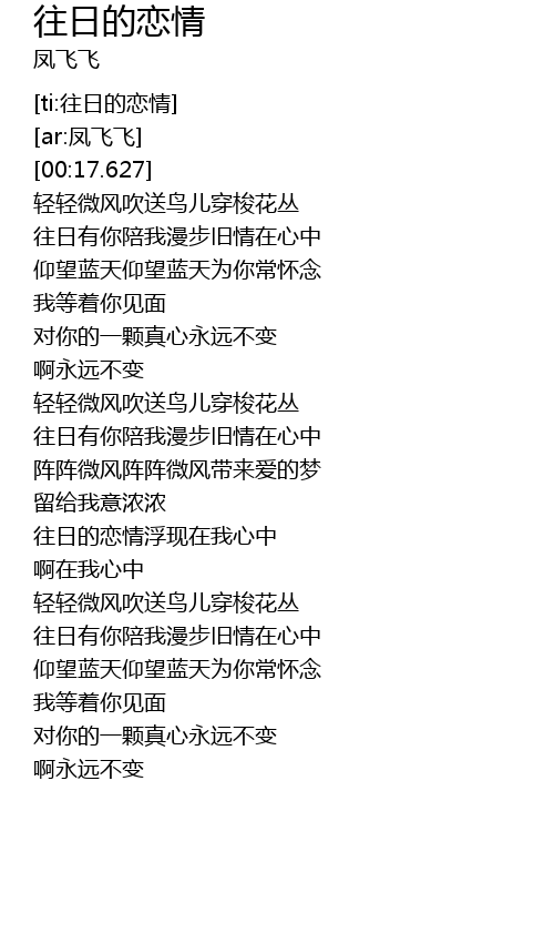 | [00:31.193] | 往日有你陪我漫步旧情在心中 |