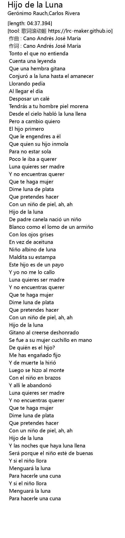 | [00:34.329] | Conjuró a la luna hasta el amanecer |