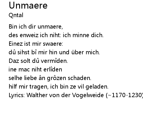 | Lyrics: Walther von der Vogelweide (~1170-1230) |