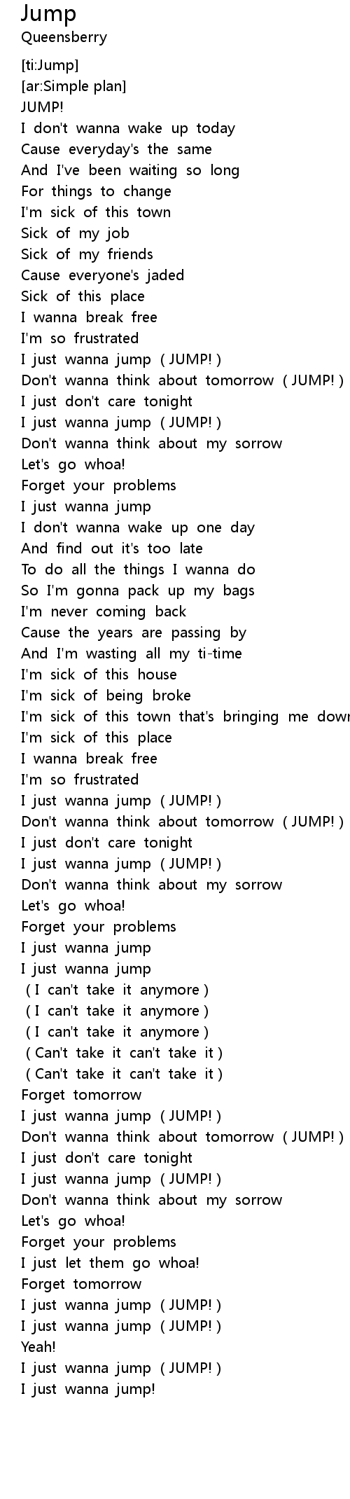 | [01:41.756] | I just wanna jump (JUMP!) |