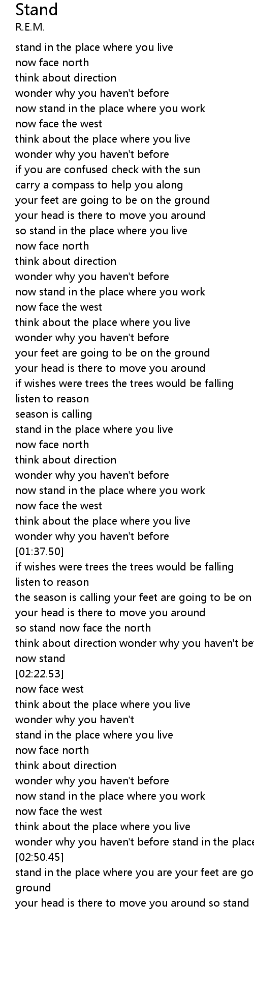 wonder why you haven't before stand in the place where you are |