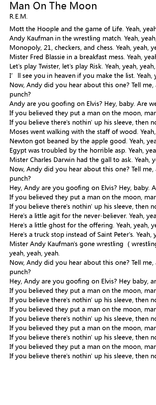 | [04:48.68] | If you believed they put a man on the moon, man on the moon. |